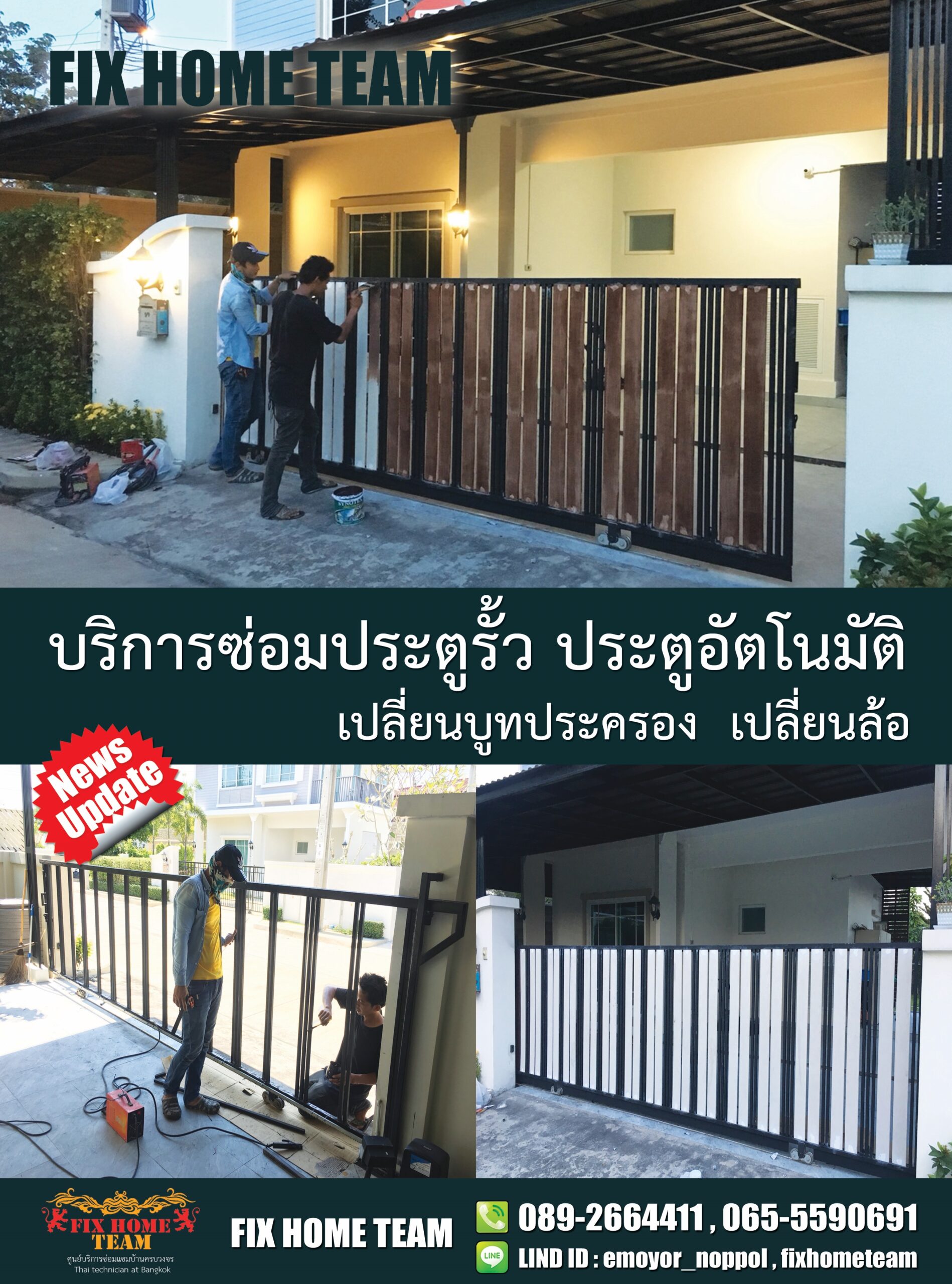 บริการซ่อมและติดตั้งประตูรั้ว – เปลี่ยนล้อประตูรั้ว – FIX HOME TEAM