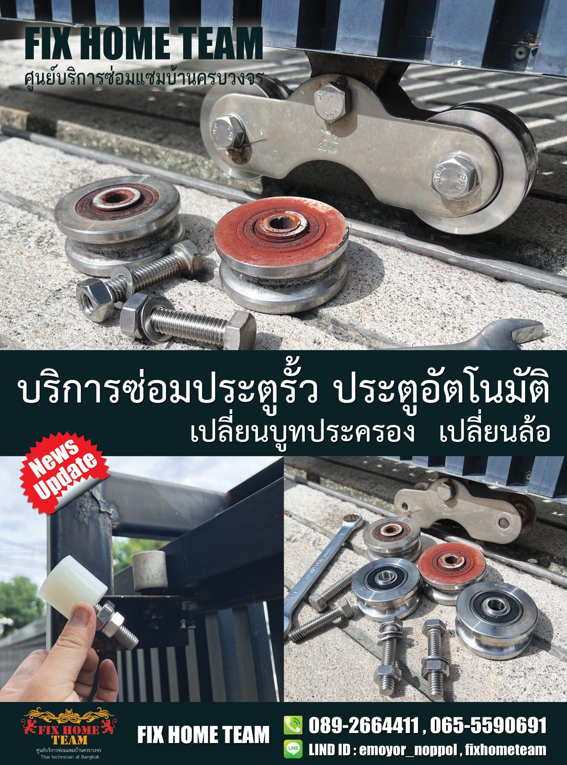 บริการซ่อมและติดตั้งประตูรั้ว – เปลี่ยนล้อประตูรั้ว – FIX HOME TEAM